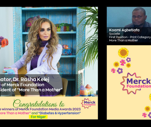 La Fondation Merck, la branche philanthropique de Merck KGaA Allemagne, a annoncé les gagnants des Prix de Reconnaissance des Médias d’Afrique de la Fondation Merck “Plus Qu'une Mère” 2023 et des Prix “Diabète et Hypertension” 2023 du Niger. Les Gagnants du reste de l'Afrique ont également été annoncés, en partenariat avec les Premières Dames africaines, les Ambassadrices de la Fondation Merck Plus Qu'une Mère. La cérémonie de remise des prix s'est déroulée par vidéoconférence pour féliciter tous les lauréats des prix médias.