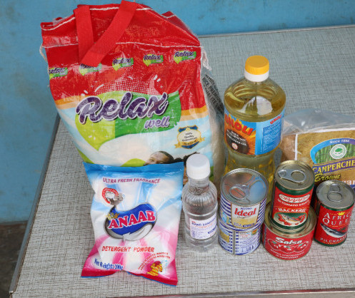Les cartons qui contiennent du riz, de l'huile de cuisson, du milo, du sucre, du lait, des tomates en conserve, du poisson en conserve et d'autres articles, leur ont été distribuées selon des protocoles de distanciation physique