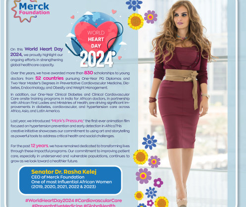 Senator, Dr. Rasha Kelej, CEO of Merck Foundation emphasized, “We mark “World Heart Day 2024” through our daily efforts in building healthcare capacity and improving access to quality and equitable Cardiovascular Preventative care, Cardiology, Hypertension and Diabetes, which are all co-related, in Africa, Asia & Latin America.