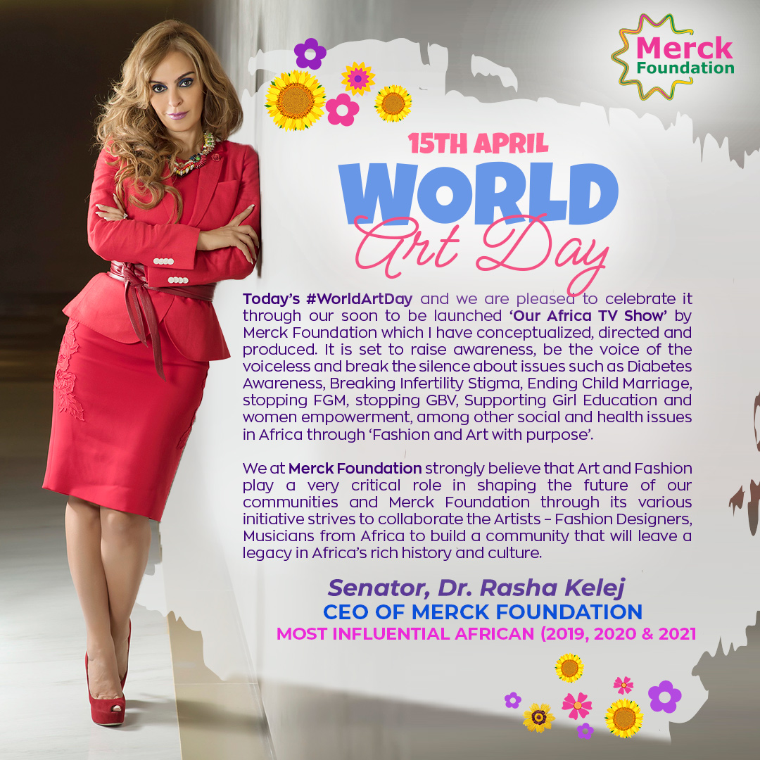 Senator, Dr. Rasha Kelej, CEO of Merck Foundation and One of 100 Most Influential Africans 2019, 2020 & 2021 said, “I am so happy to be celebrating the ‘World Art Day 2022’. We at Merck Foundation strongly believe that Media, Art, and Fashion play a very critical role in shaping the future development of our communities. Fashion and Art have a purpose beyond entertainment and looking good. We have also established our African Community of “Art and Fashion with Purpose” with the aim to raise awareness about a wide range of social and health issues such as Ending Child marriage, Ending FGM, Stopping GBV, Breaking Infertility Stigma, Supporting Girl Education and Women Empowerment and raise awareness about diabetes and hypertension and more”.