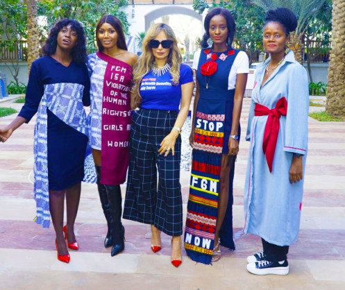 • Senator, Dr. Rasha Kelej with Senegalese Fashion Designers featuring STOP FGM designs, from Fashion with Purpose Community