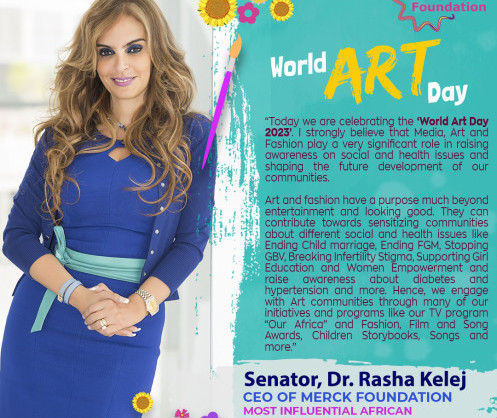 Merck Foundation’s pan African TV program “Our Africa” addresses Social and Health issues through the ‘Fashion and Art community with Purpose’ Community created by Senator Dr. Rasha Kelej, CEO of Merck Foundation (www.Merck-Foundation.com). Merck Foundation emphasizes on the importance of Art and Media communities as critical partners to raise awareness about sensitive health and social issues through their “OUR AFRICA” TV program and Fashion, Film and Song awards to mark “World Art Day 2023”.