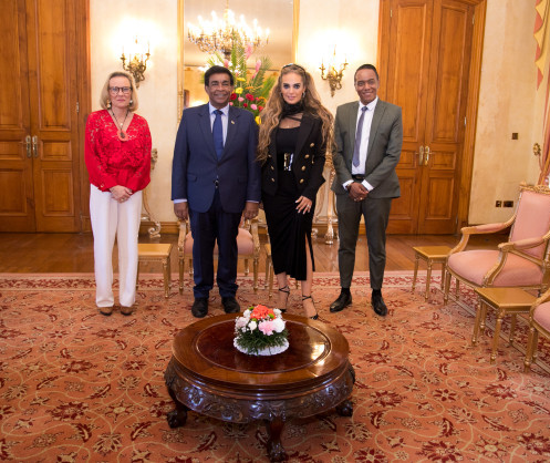 Senator, Dr Rasha Kelej, CEO of Merck Foundation & Dr. Belén Garijo, Chair of the Executive Board & CEO of Merck and Member of Merck Foundation Board of Trustees meets His Excellency Mr. PRITHVIRAJSING ROOPUN G.C.S.K , President of Mauritius (3)