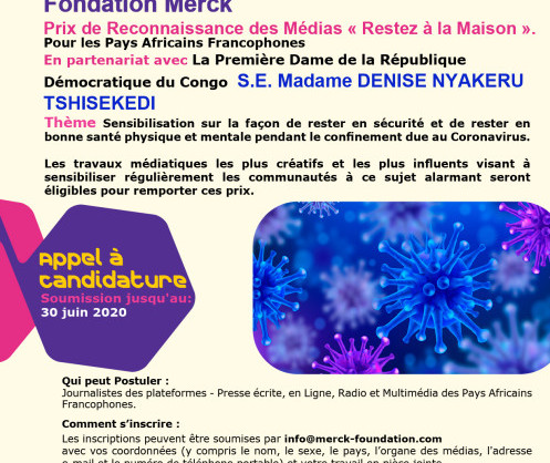 • L'appel à candidature pour les prix des médias «Stay at Home» de la Fondation Merck en partenariat avec la Première Dame de la RD Congo