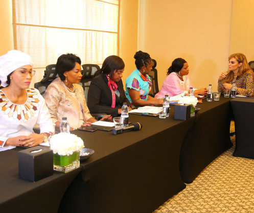 Dr. Rasha Kelej, PDG de la Fondation Merck avec H.E. Premières dames du Burundi, Guinée Conakry, Sierra Leone, Gambie, Niger, Malawi, Mozambique, Zimbabwe, République centrafricaine, Congo Brazzaville, Ghana, Namibie, Botswana, Libéria et ancienne première dame de la Mauritanie (10)