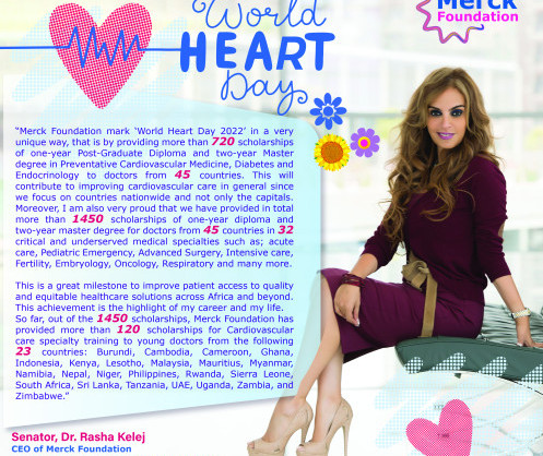 Merck Foundation, the philanthropic arm of Merck KGaA Germany marks “World Heart Day 2022” in partnership with African First Ladies, Ministries of Health, Medical Societies, and Academia, through their long-term commitment toward transforming patient care landscape and building health care capacity in Africa, Asia and beyond.