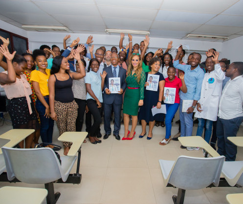 • Le Dr Rasha Kelej, PDG de la Fondation Merck avec des étudiants en médecine de l'Université Agostinho Neto en Angola