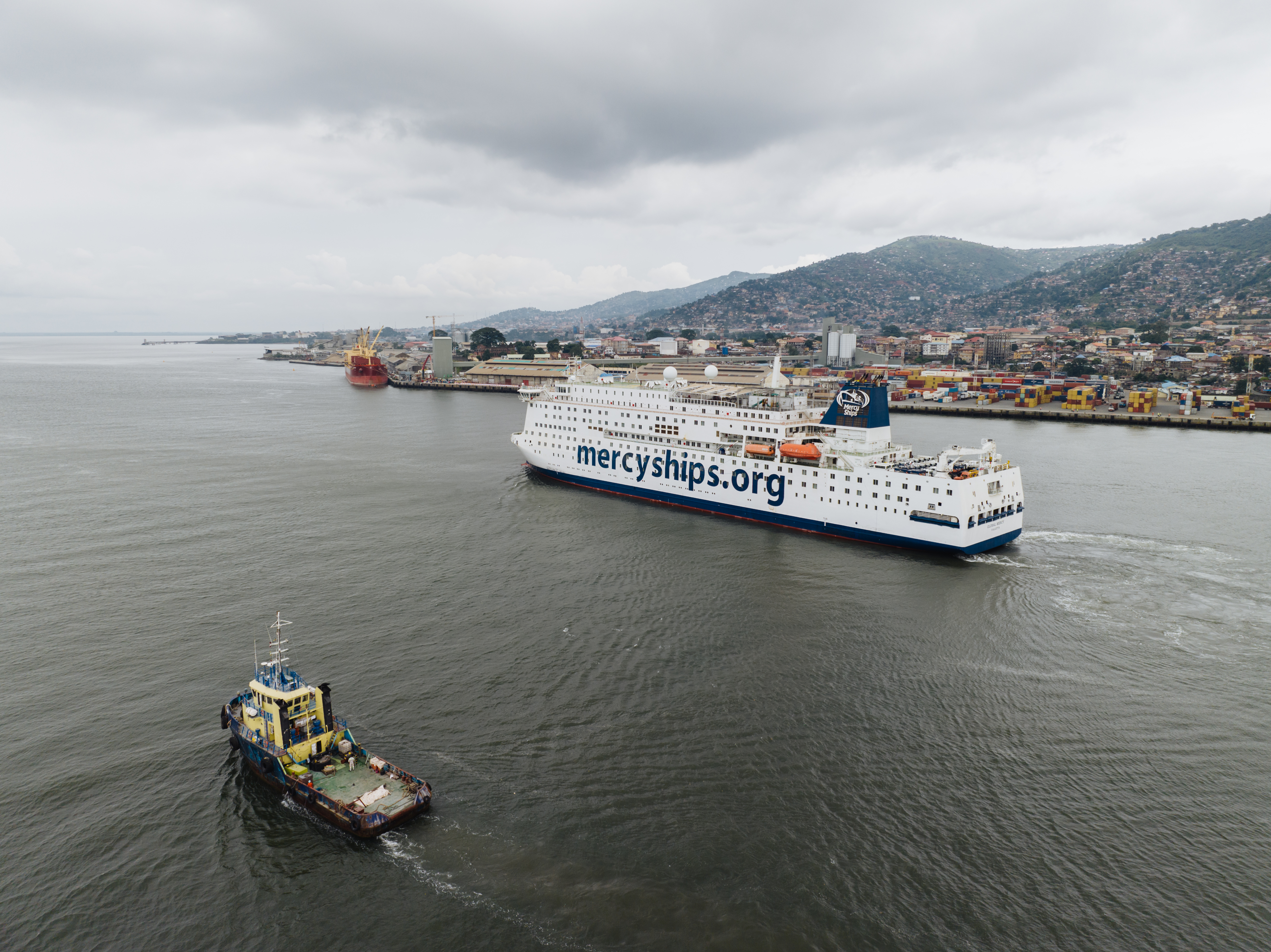 Le plus grand navire-hôpital de l'ONG est ancré au port de Freetown depuis août 2023 sur invitation de Son Excellence, le Dr Julius Maada Bio, Président de la République de la Sierra Leone. Conformément au plan national de développement sanitaire du pays, Mercy Ships a réalisé près de 2 000 interventions chirurgicales et formé 145 professionnels de la santé à ce jour.