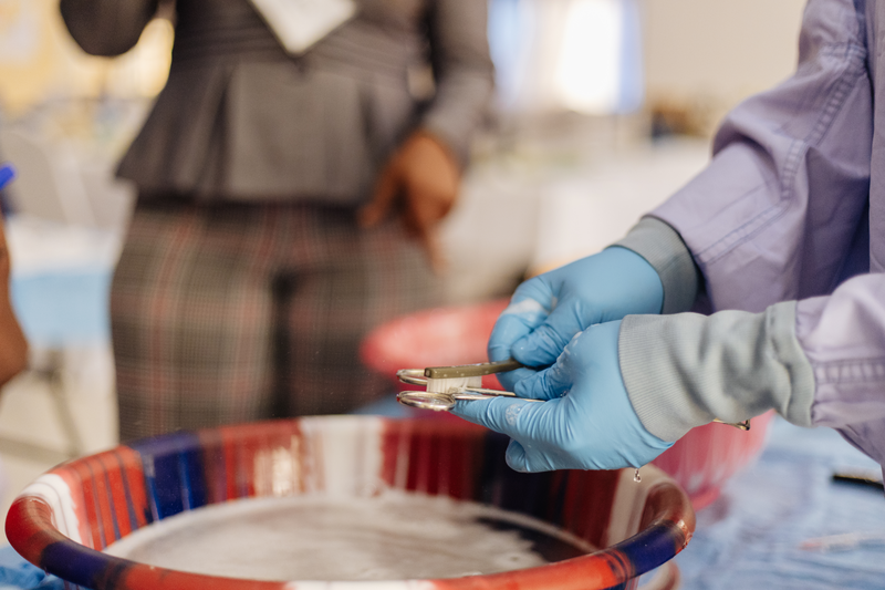 Participants began taking turns scrubbing over different metal tools, from scissors, tweezers, prongs, and scalpels; removing organic material that had become caught in their intricate grooves. They inspected each other’s work, providing feedback and tips as each nurse took a turn at a soapy bowl.