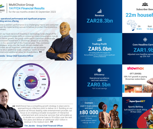 MultiChoice Group (MCG, or the group) (www.MultiChoice.com), Africa’s leading entertainment company, executed well on its operational objectives during the six months ended 30 September 2023 (1H FY24).