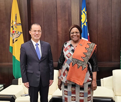 Ambassador Zhao once again congratulated President Ndaitwah on her election as the President of Namibia, saying that the Chinese side always attaches high importance to China-Namibia relations, the potential for the bilateral cooperation in various fields is enormous, and the Chinese side stands ready to work together with Namibia to actively implement the outcomes of the FOCAC Beijing summit and promote further growth in the bilateral relations.