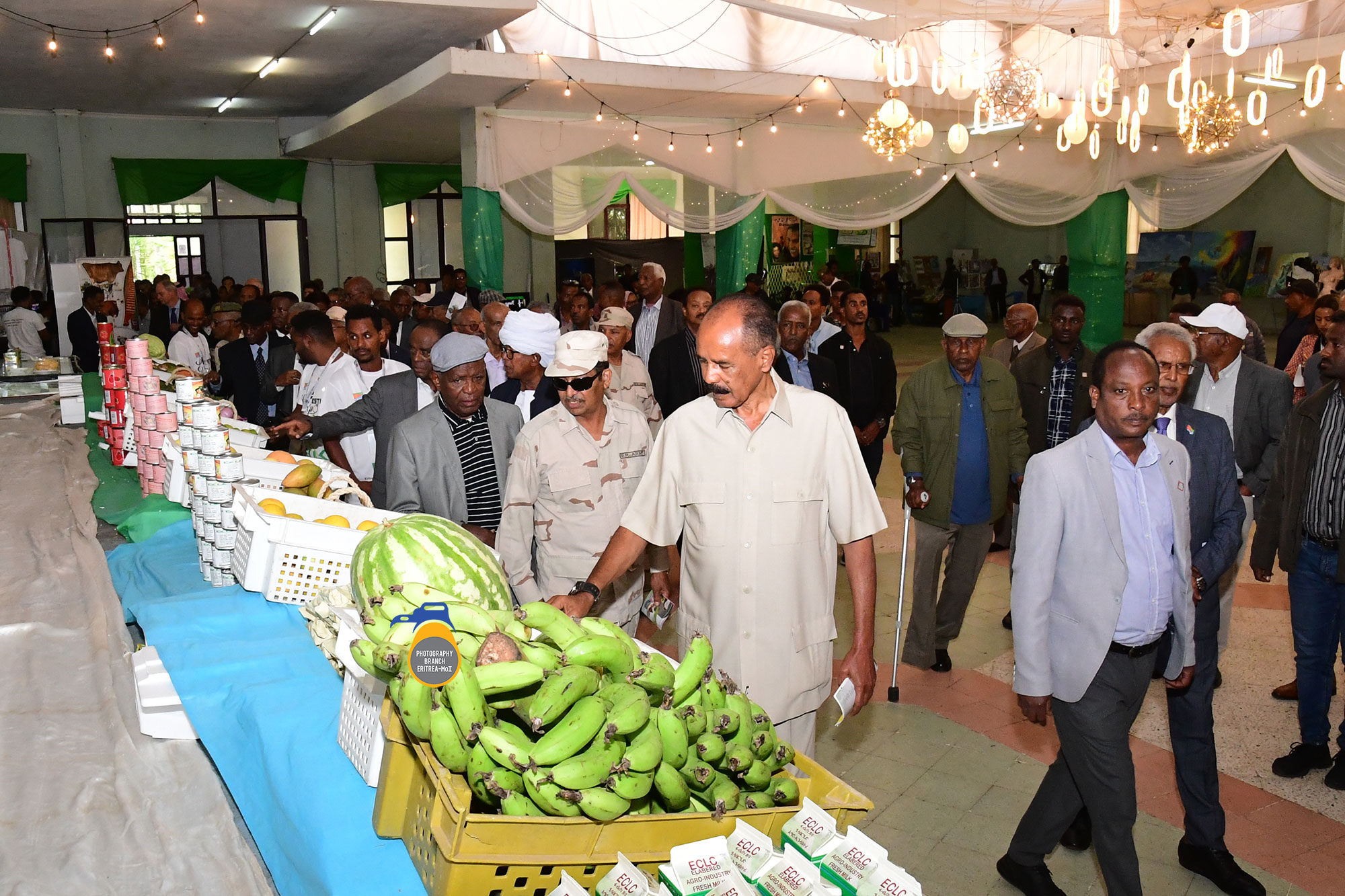 President Isaias toured the festival grounds, viewing exhibits on agricultural advancements, renewable energy, tourism, and marine resources. The displays also highlighted Eritrea’s history, culture, and the everyday lives of citizens.