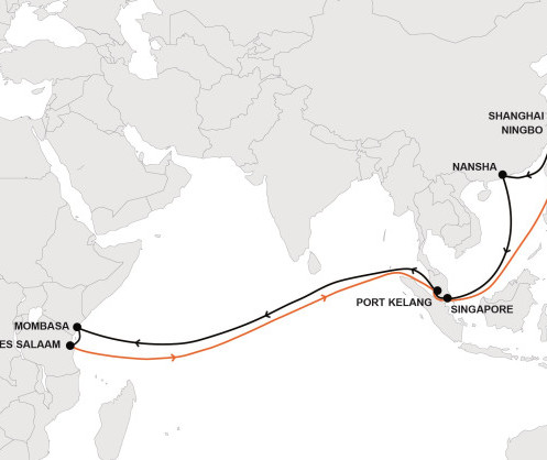 Shanghai ▪ Ningbo ▪ Nansha ▪ Singapore ▪ Port Kelang ▪ Mombasa ▪ Dar Es Salaam ▪ Port Kelang ▪ Singapore ▪ Shanghai.