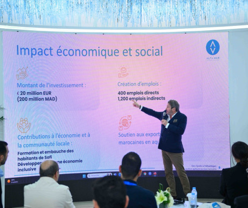 Cet événement a souligné le succès de la collaboration entre la Norvège et le Maroc dans la promotion des pratiques d’aquaculture durable. Alta Mar, entreprise norvégienne et marocaine, se concentre sur la culture d’espèces de grande valeur telles que le Thon rouge de l’Atlantique (Thunnus thynnus), le Bar européen (Dicentrarchus labrax), la Dorade royale (Sparus aurata), la Sériole couronnée (Seriola dumerili) et le Maigre (Argyrosomus regius). Actuellement en phase de construction, le projet devrait être opérationnel au quatrième trimestre 2025 et représente un investissement de 200 millions de dirhams marocains (20 millions d’euros). Alta Mar est l’une des rares entreprises au monde capable de cultiver avec succès le Thon rouge de l’Atlantique, une avancée majeure en aquaculture durable.