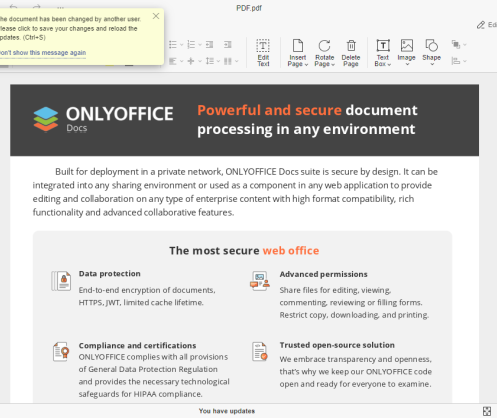The developers of ONLYOFFICE Docs (www.ONLYOFFICE.com) released version 8.2 of the online editors with multiple novelties. Built with document collaboration in mind, the native PDF editor gets support for co-editing and signatures. Other enhancements include redesigned UI, faster file loading, zero-downtime deployment, field codes, desktop support for touch screen, RTL and smooth scrolling in sheets, and others.