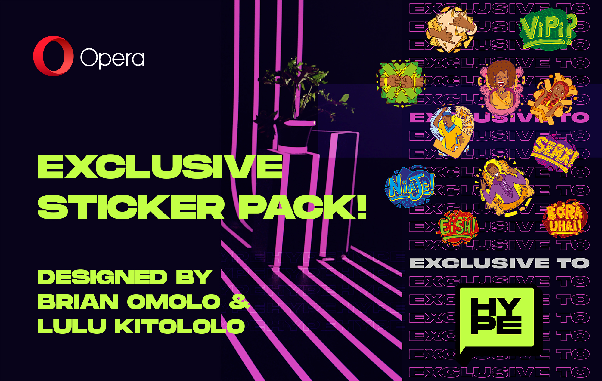 “We are extremely happy to celebrate African culture with Hype and we are very excited with the end result and the collaboration we had with Brian and Lulu.” said Hamel. “These unique stickers with original designs are something we are very proud of at Opera as we become the first major browser to integrate real African art and pop culture into our products.”