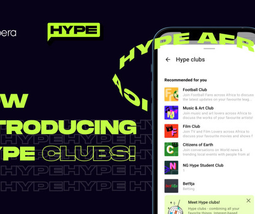 Opera (www.Opera.com) is launching Hype Clubs, public and interest-based group chats in Hype, the new chat service built into the Opera Mini web browser. Hype is currently available and quickly gaining popularity in Kenya, South Africa, Ghana, Zambia, Nigeria and other English-speaking African countries.