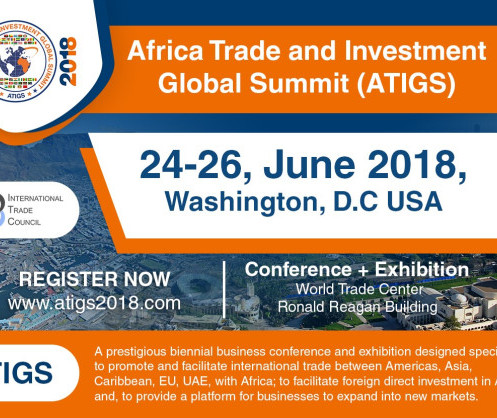 Business leaders and prominent personalities are expected to speak at the Africa Trade & Investment Global Summit (ATIGS) 2018 (http://ATIGS2018.com) to be held on June 24 to June 26 at World Trade Center – Ronald Reagan Building in Washington, D.C. The prestigious biennial business conference and exhibition will bring together delegates from more than 70 countries including government delegations, high-profile African leaders, project developers, and international investors. The event has a well-structured format for facilitating direct peer engagement, for more advanced deal-making, showcasing fundable companies, co-investments and financing engagements, strategic partnerships, and business networking.