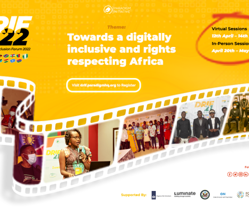 The 9th edition of Paradigm Initiative’s (www.Paradigmhq.org) hybrid flagship event, the Digital Rights and Inclusion Forum (DRIF22), will be hosted virtually from April 12 – 14, 2022, and in-person from April 20 – May 20, 2022.