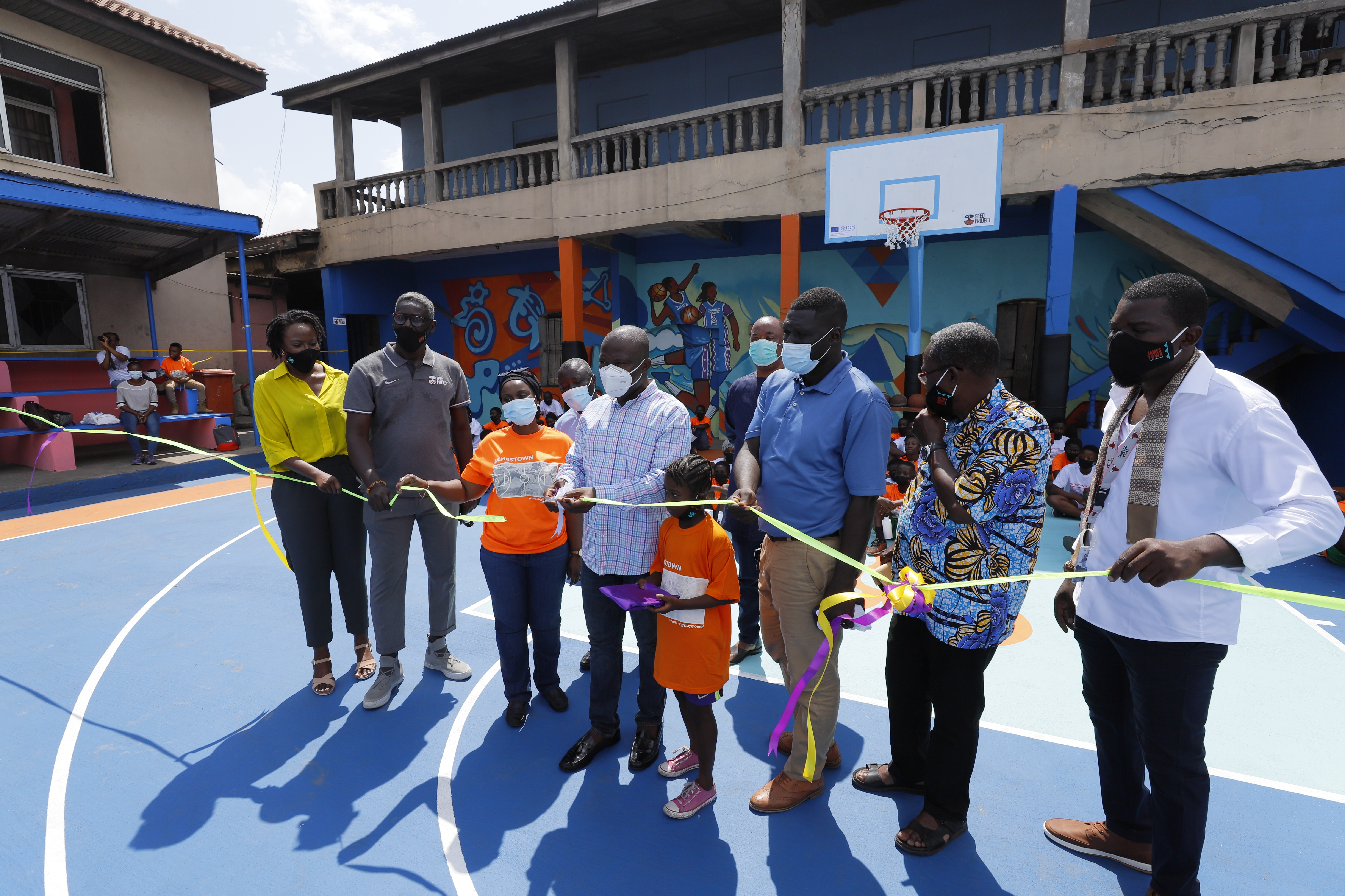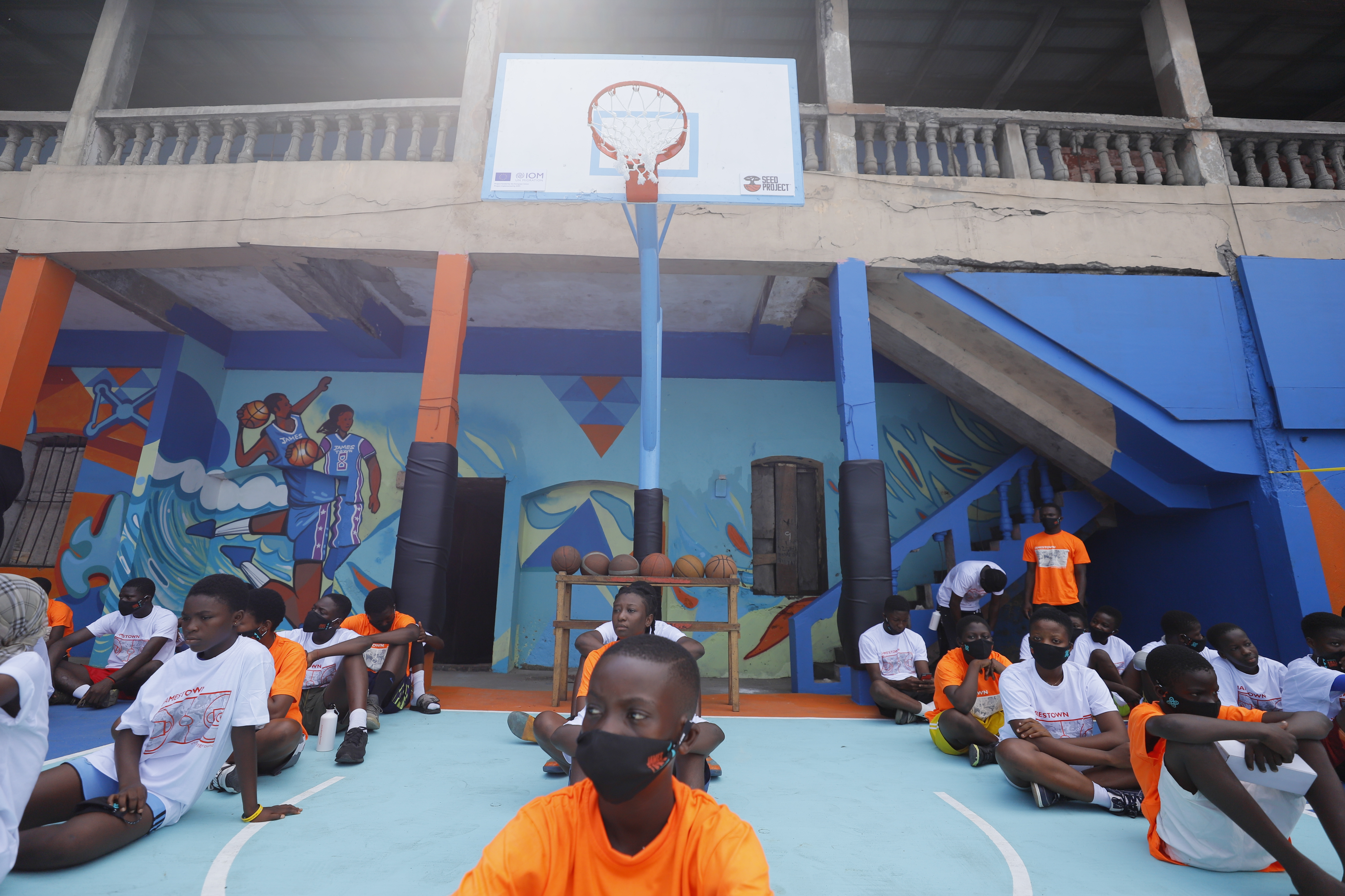 On 2 July 2021, in Jamestown, Accra, the Accra Metropolitan Assembly (AMA), the International Organization for Migration (IOM), the Delegation of the European Union to Ghana, the Sports for Education and Economic Development (SEED) Project (www.SEEDProject.org) and DUNK Grassroots, together with some 200 youth, inaugurated the newly renovated basketball court at the GaMashie Development Agency.