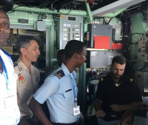Members of the Maritime Operational Planning Course of the Eastern Africa Standby Force (EASF) visited the ESPS Navarra yesterday in Victoria, Seychelles.