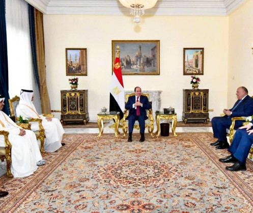For his part, HE the President of the Arab Republic of Egypt entrusted HE Deputy Prime Minister and Minister of Foreign Affairs with his greetings to HH the Amir and his wishes of good health and happiness to His Highness and further progress and development to the Qatari people.