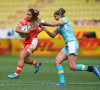 Parmi les équipes féminines, la Tunisie, présente après s’être classée quatrième de la dernière Africa Women’s Sevens organisée à Monastir en 2019, entamait le tournoi avec un groupe juvénile dont la moyenne d’âge dépasse à peine la vingtaine. Ces joueuses jeunes de par leurs âges mais grandes de par leur talent n’ont laissé personne indiffèrent. C’est à en croire les propos des commentateurs de la première rencontre face à la Papouasie Nouvelle Guinée ou l’équipe tunisienne a démenti toutes les pronostiques en s’imposant sur le score de 48 à 5 face à l’équipe la mieux classée de la poule offrant ainsi au grand public un spectacle digne d’un événement de cette envergure.