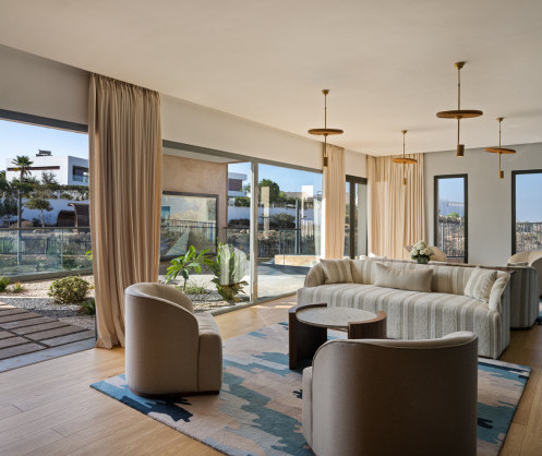 The new Residences span twelve elegant low-rise buildings in soft beige tones that blend naturally with the coastal environment. Drought-resistant greenery and native argan trees enrich the landscape while interiors embrace a minimalist design with earthy textures and muted colors inspired by Taghazout’s surf and shoreline.