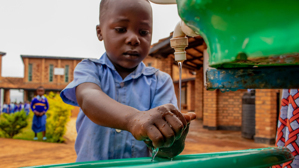 • © UNICEF/Olivier Minega | Se laver les mains avec du savon est un des moyens les plus efficaces de prévenir la propagation d'Ebola