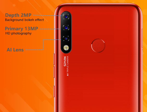 Equipped with 13MP Triple Rear Camera and 8MP Front Camera, TECNO SPARK 4 does well in clear photography, bokeh effect and AI portrait mode