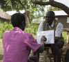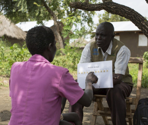 • A South Sudanese refugee assesses her mood on a pictorial scale during a psycho-social counselling session in Uganda’s Bidibidi settlement. Image source: UNHCR/Rocco Nuri