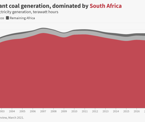 Africa - unlike Asia - has avoided a coal-reliant electricity grid. There has been no growth in total coal generation since 2014, as South Africa’s falling coal generation was cancelled out by increases in Morocco and Zambia. In addition, there is very little coal capacity under construction or planned in Africa - only South Africa and Zimbabwe are building new coal.