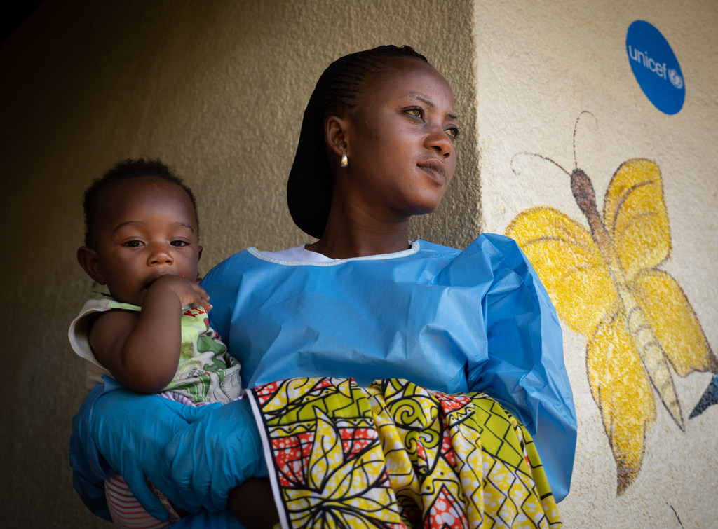 • Jemima, une survivante d'Ebola, prend soin de Joshua, âgé de 6 mois, dans une crèche soutenue par l'UNICEF à Beni, dans l'est de la RDC (photo d'archives) (UNICEF / UN0264160 / Hubbard)