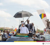 Il est ovationné par la centaine des membres des corps constitués avant que son cortège ne se mette en mouvement pour le palais présidentiel