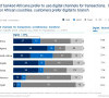 1. Digital first. 40% of Africans prefer to use digital channels for transactions. In four major African countries – South Africa, Nigeria, Kenya, Angola – a higher proportion of Africans prefer the digital channel for transactions to the branch channel. Given low branch density in Africa, banks need to employ a digital first approach. The report hones in on four themes of innovation emerging in Africa on digital – end-to-end digital transformations (e.g. Equity Bank); partnering with telco companies (e.g. CBA in Kenya or Diamond Bank in Nigeria); building a digital bank (e.g. ALAT in Nigeria); and building an ecosystem (e.g. Alipay in China).