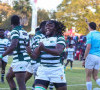 • Takudzwa Chieza celebrating his brace against Zambia in the Sables’ 39-10 victory at the Machinery Exchange Stadium, Harare Sports Club