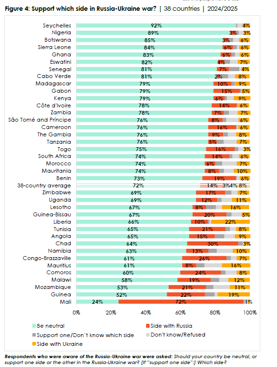 • Russia trails other powers in positive assessments across Africa; citizens urge governments to remain neutral in Russia-Ukraine war (4)