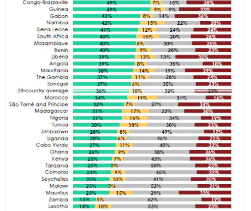 Data from 38 African countries show that views of Russia’s influence vary widely across 38 surveyed countries