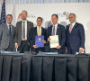 • Massad Boulos, US Senior Advisor for Africa (right) and Troy Fitrell, US Bureau of African Affairs (left) and join Aleem Karmali, Director for RHPCL (Center) and Brian Kelly, CEO of Anzana Electric (2nd right) at the signing of the Invitation to Partner Agreement for the Ruzizi III Regional Hydropower Project