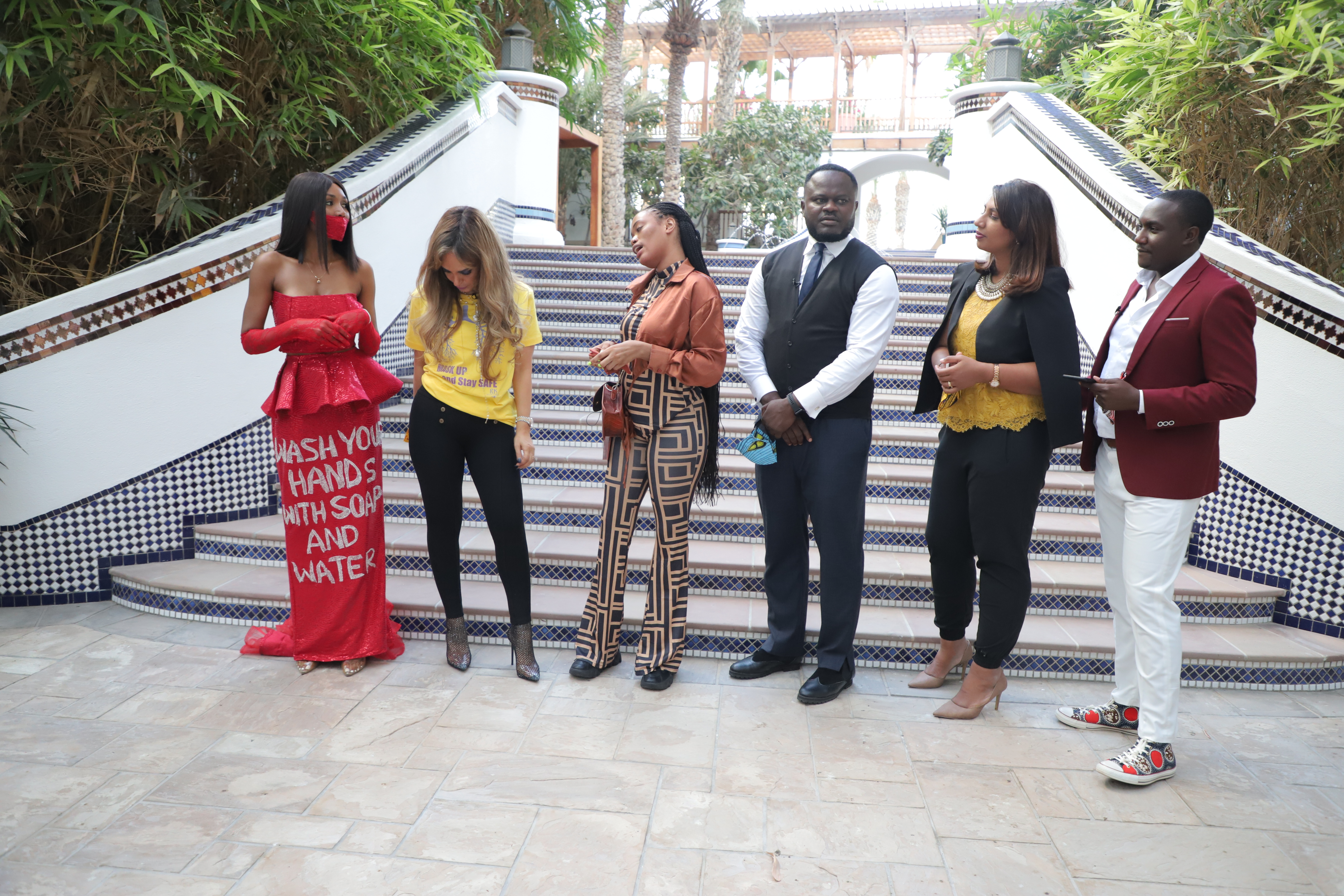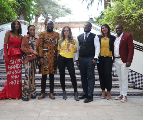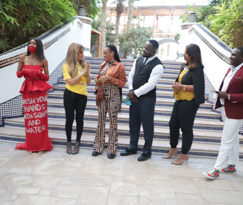 • Senator, Dr. Rasha Kelej, CEO of Merck Foundation with Fashion & Art with Purpose Community during the shoot of Episode 7 Our Africa TV Program by Merck Foundation