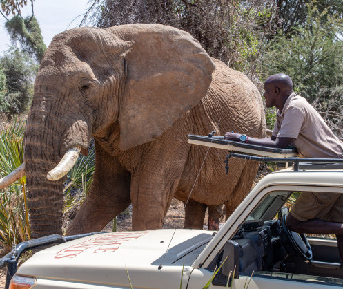 • David monitoring elephants in Samburu National Reserve, where numbers have drastically fallen due to drought and illegal overgrazing (Sarah Marshall)