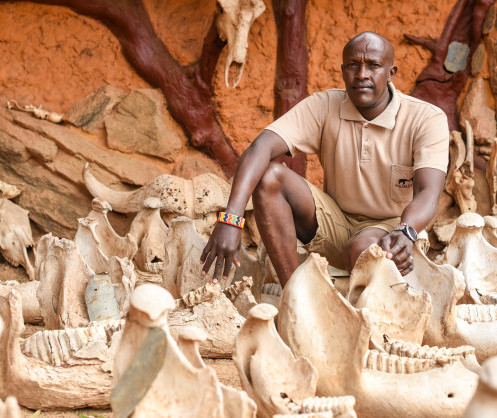 • David and a graveyard of poached elephant skulls at the STE research camp (Sarah Marshall)