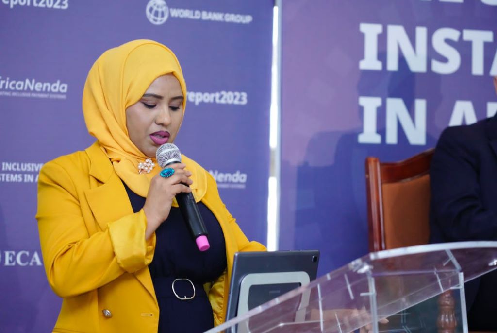 • La ministre d'État éthiopienne, Mme Huria Ali, lors du lancement du rapport sur l'état des systèmes de paiement instantané inclusifs en Afrique 2023