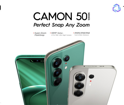 Le modèle phare CAMON 50 Ultra 5G garantit également des performances fiables grâce au processeur MediaTek Dimensity 7400 Ultimate. Tous les modèles de la série disposent d’un écran AMOLED ultra lumineux 1.5K à 144 Hz pour une expérience visuelle fluide. La robustesse est renforcée par une certification IP68/IP69/IP69K contre l’eau et la poussière.