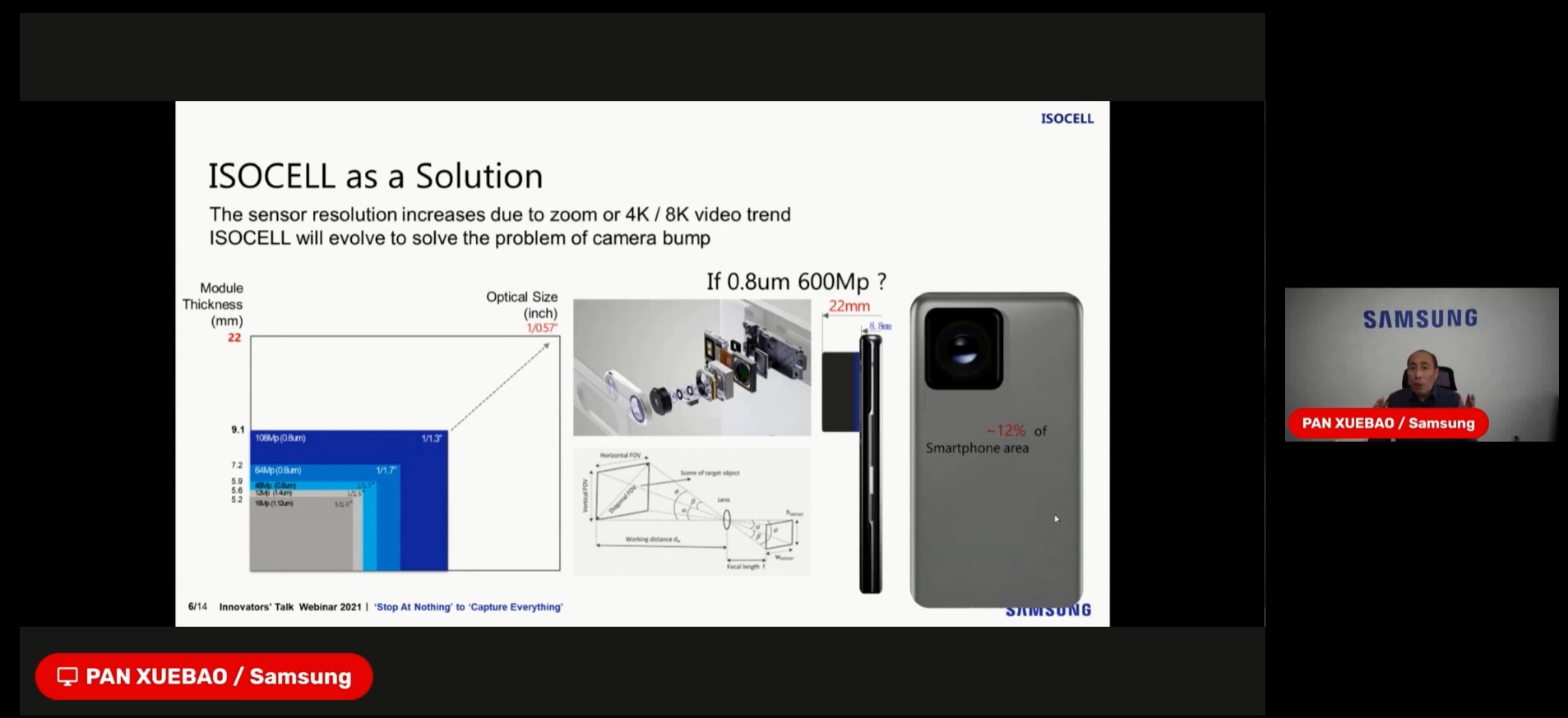 Samsung Electronics’ VP and Head of R&D, Pan Xuebao, believes “We’re close to the point where smartphone brands can now deliver DSLR-grade photography in the hands of customers.” He mentioned Samsung’s Tetra and Nona technology is bringing great performance across both bright and low light conditions by providing a bigger canvas to capture more light, while allowing smaller pixels for higher definition. Speed is also prioritized, with ISOCELL bringing faster autofocus capabilities. ”