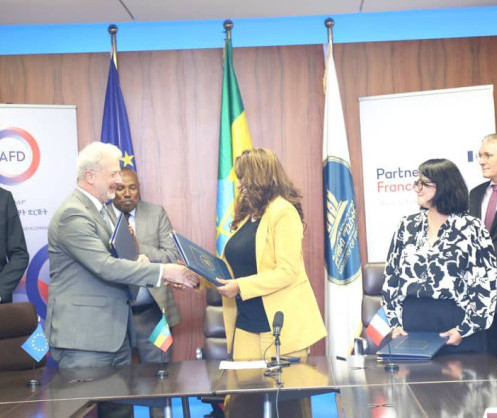 The financing agreement was signed by H.E Semereta Sewasew state minister of Finance, H.E Valérie Tehio, AFD director in Ethiopia and Dr. Stefan Lock