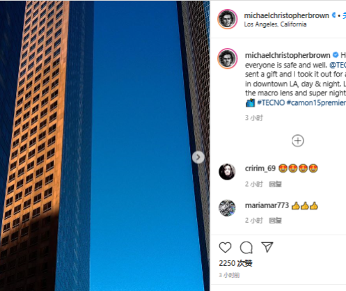 Recently, Michael Christopher Brown post several photos and a Vlog on his Instagram and shared his experience on TECNO CAMON 15 (www.TECNO-mobile.com) Premier photography.