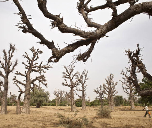 • قروي يسير عبر غابة تحفها أشجار الباوباب في النيجر. أوراق وفاكهة الباوباب مصدر لغذاء السكان المحليين وعلف للحيوانات.