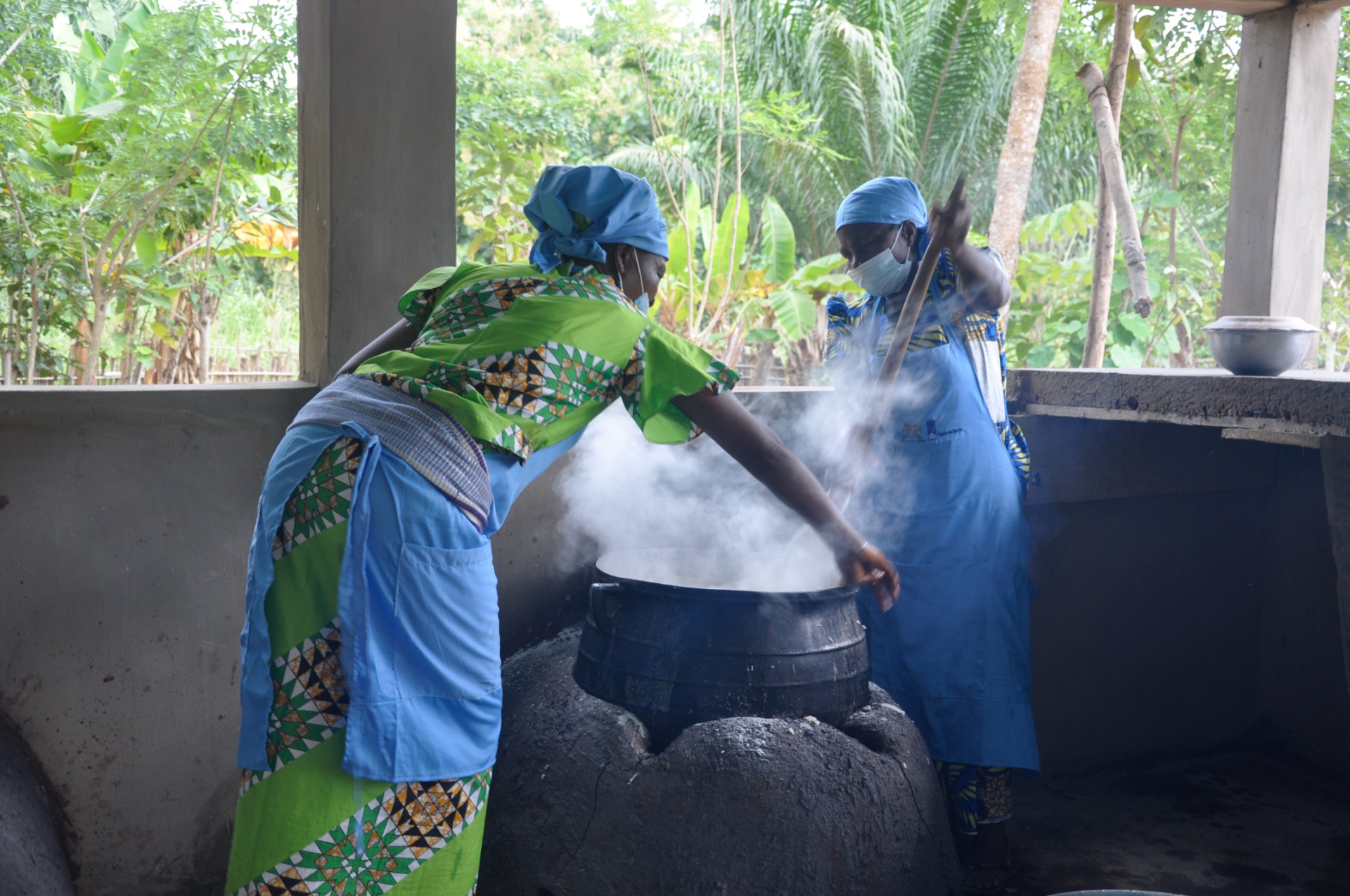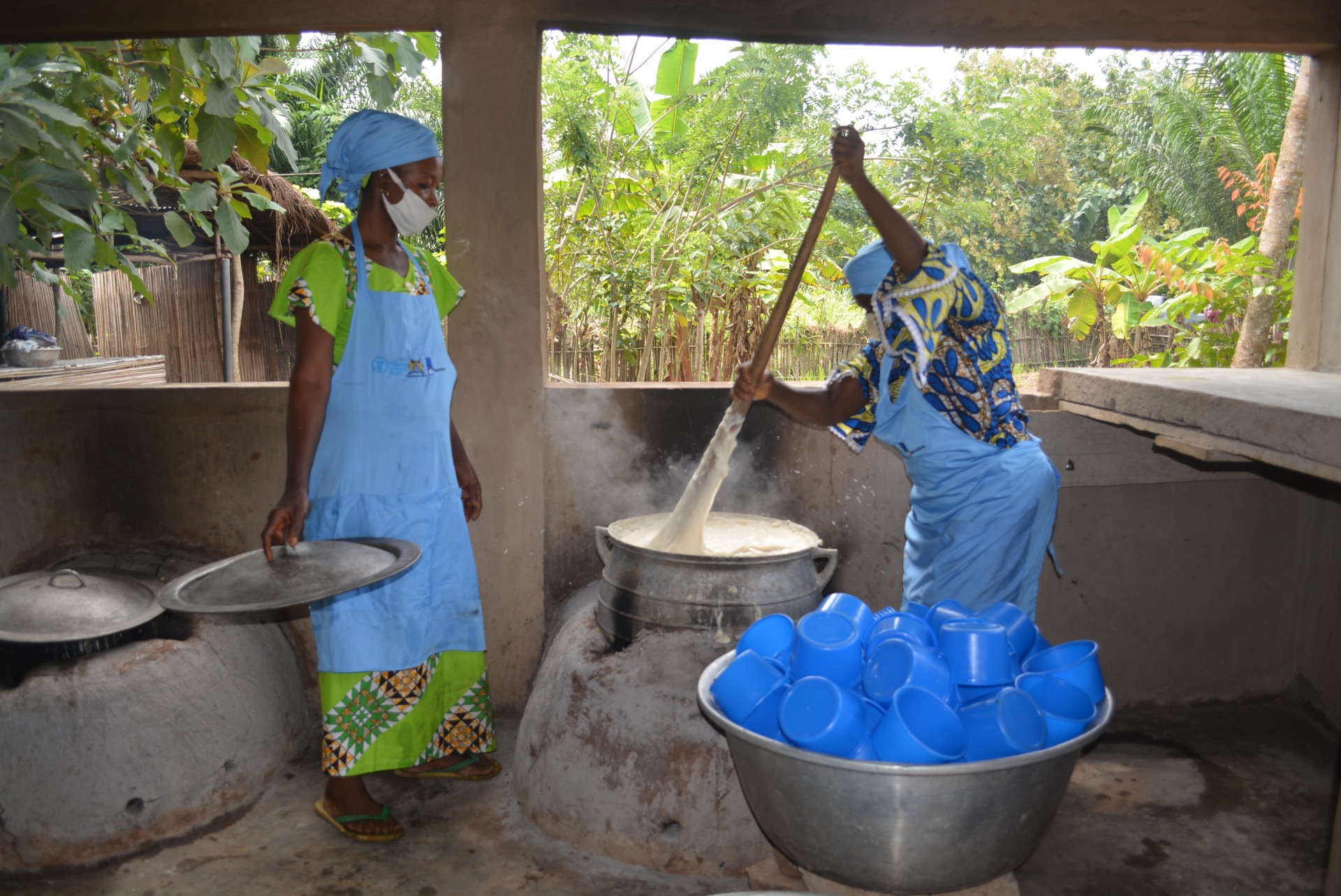 • The cooks of EPP Agontinmè (public primary school), in the commune of Athiémé, Mono department, preparing maize paste for the students’ meals as part of the National Integrated School Feeding Programme that WFP implements in Benin. Life-changing interventions like these are enabled through the support of valued donors—including the Choithram International Foundation—who remain key partners in WFP’s humanitarian efforts. Credit/Photo: Makéba TCHIBOZO (2)