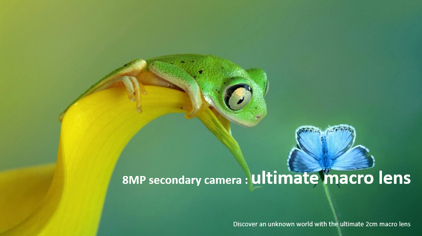 De plus, la seconde lentille arrière permet la réalisation de photos de grand angle, jusqu’à 120 degrés, avec une zone de cadrage 300% plus grande et une expérience photographie macroscopique jusqu’à 2 centimètres. Les yeux du public sont ouverts au monde avec une perspective beaucoup plus large, et ils saisissent en même temps tous les petits détails esthétiques qui les entourent.